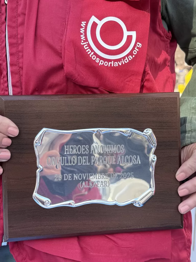 El Barrio Orba o Parque Alcosa de Alfafar , en Valencia, ha ofrecido un homenaje/agradecimiento al voluntariado que ayudó a los vecinos tras la catástrofe de la Dana el 29 de Octubre de 2024. Juntos Por la Vida estuvo y recibió un reconocimiento por el trabajo que realizó en el barrio desde el primer día y porque 13 meses después continúa allí con el proyecto del Ludobus, acompañando a las familias y reforzando los vínculos creados tras la riada. Por ello tuvo una gran presencia en este acto de reconocimiento tan emotivo.