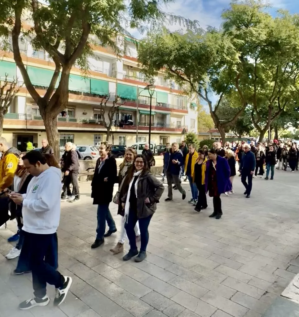 Una mañana en la que mas de 600 voluntarios y voluntarias realizaron un pasacalles por el barrio acompañados por la musica de bandas aplaudiendo a los vecinos que desde sus balcones a la vez aplaudían y agradecían el trabajo y la ayuda del voluntariado. Muchos carteles colgados en balcones y ventanas mostraban este agradecimiento .