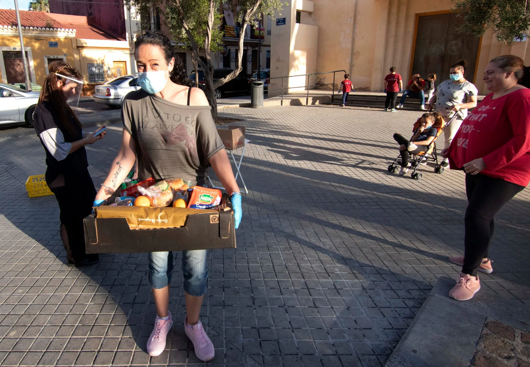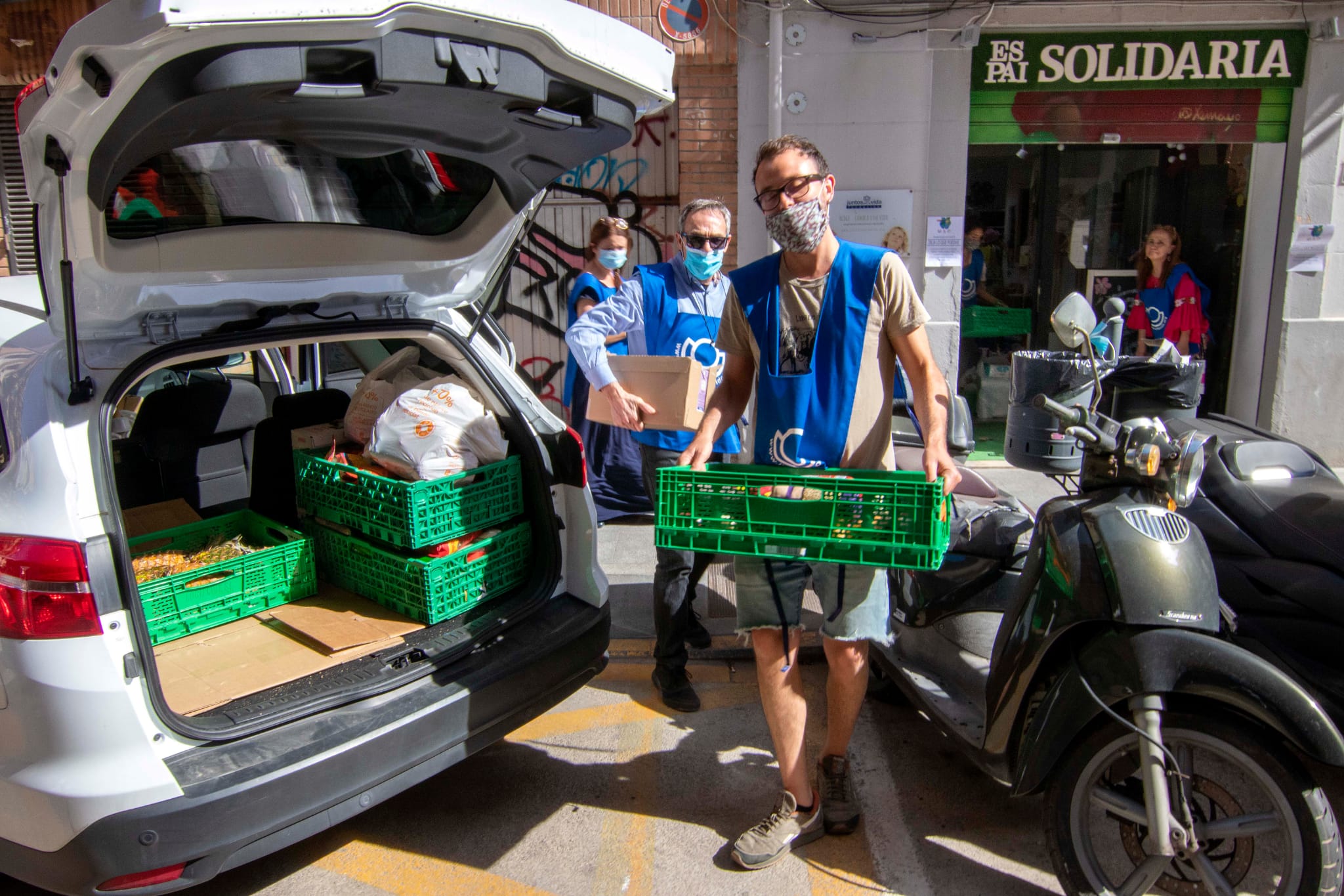 Los voluntarios y voluntarias colaboran cada día recogiendo las donaciones de supermercados, el Banco de alimentos, mercados de barrio, empresas valencianas, aportaciones de todo tipo de tiendas y establecimientos, y de particulares que hacen “compras solidarias”. Y con todo ello preparan cajas que van destinadas a familias que están viviendo situaciones muy difíciles económica y socialmente.
