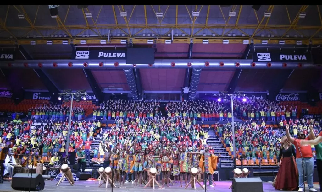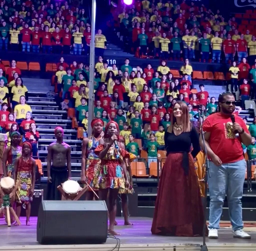 Cerca de 3.000 espectadores acudieron al concierto en el que todos participaron cantando , y además algunos bailaron con los niños niñas y jóvenes del coro africano en la pista del pabellón deportivo, que se convirtió en una gran encuentro festivo y solidario lleno de colores y música, y mucha emoción