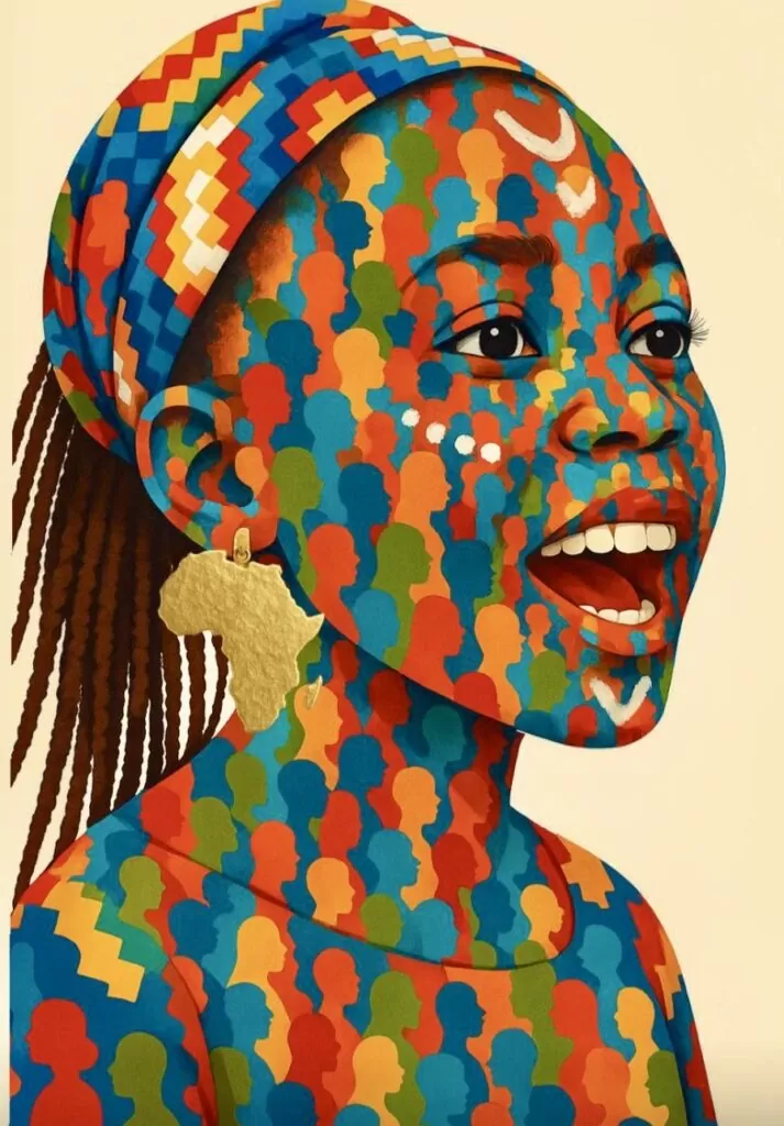 Mostraban la imagen del rostro de una mujer africana que contiene los colores, las personas y países africanos, y que representa la unión de Africa , rostro que es el símbolo del encuentro » Mil voces por Benin»