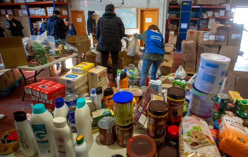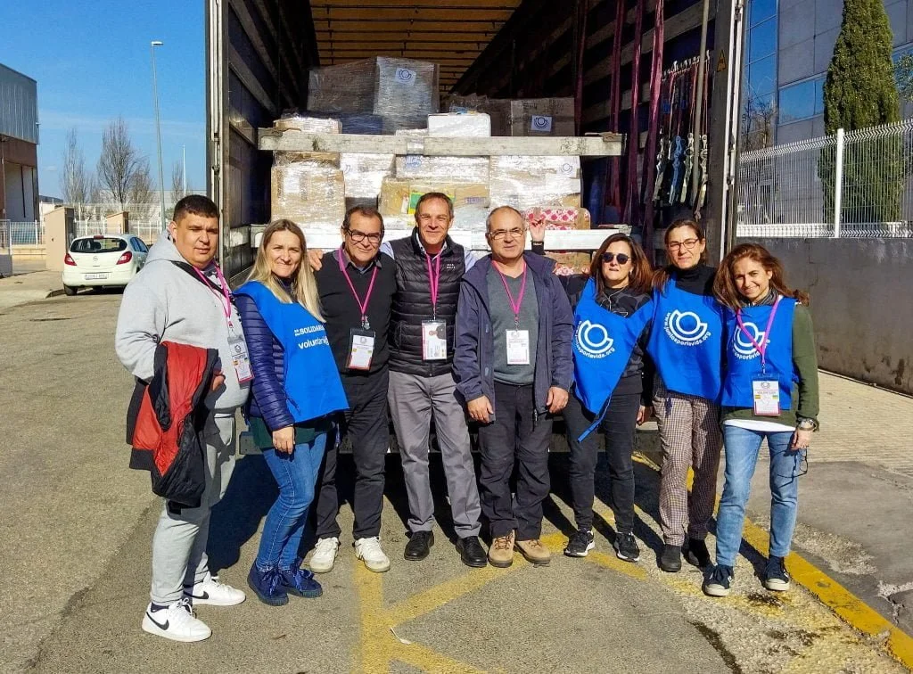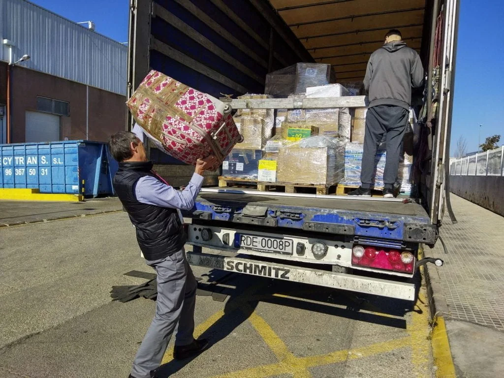 Voluntarios y voluntarias de Juntos por la Vida en Valencia y Alicante colaboran en la recogida , y preparación de la ayuda para su envio en camiones hacia Ucrania.