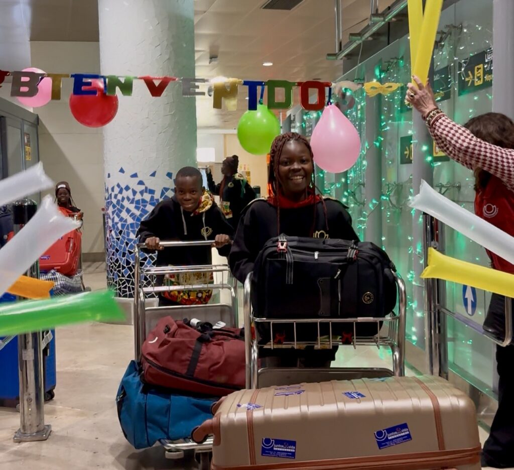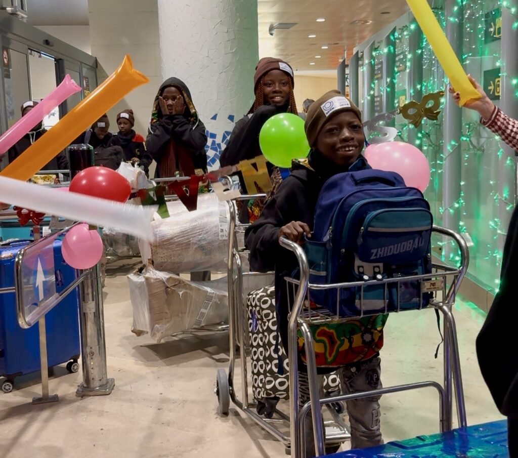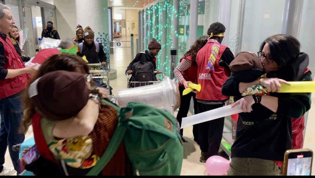 Acompañados por la presidenta de JxLV y directora de Voces por Benin, que viajó con ellos, llegaban al aeropuerto en Valencia, y fueron recibidos por voluntarios de la ong. Traían consigo los tambores, vestuario y todo el material necesario para sus conciertos. Pero lo mas importante que traían es su alegría y sonrisas y la ilusión y ganas de disfrutar, y muchos abrazos a su llegada.