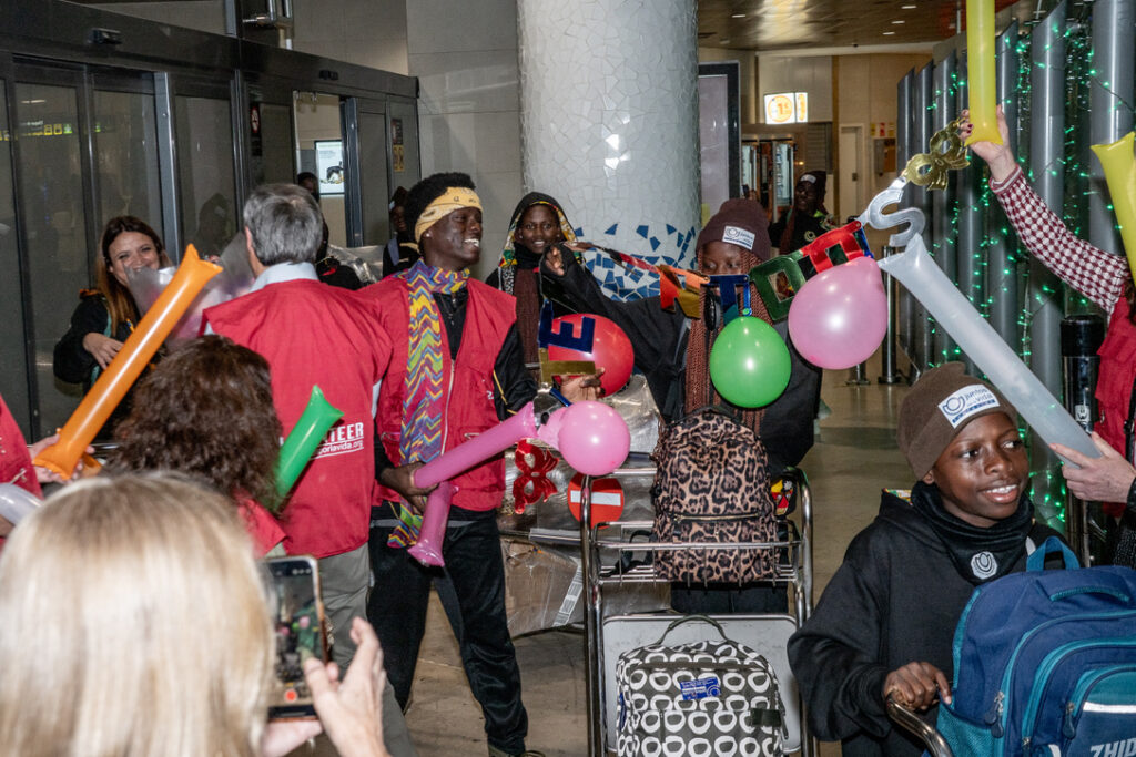 Nada mas aterrizar , en el hall del aeropuerto, cantaron juntos agradeciendo su llegada esta nueva experiencia y oportunidad.